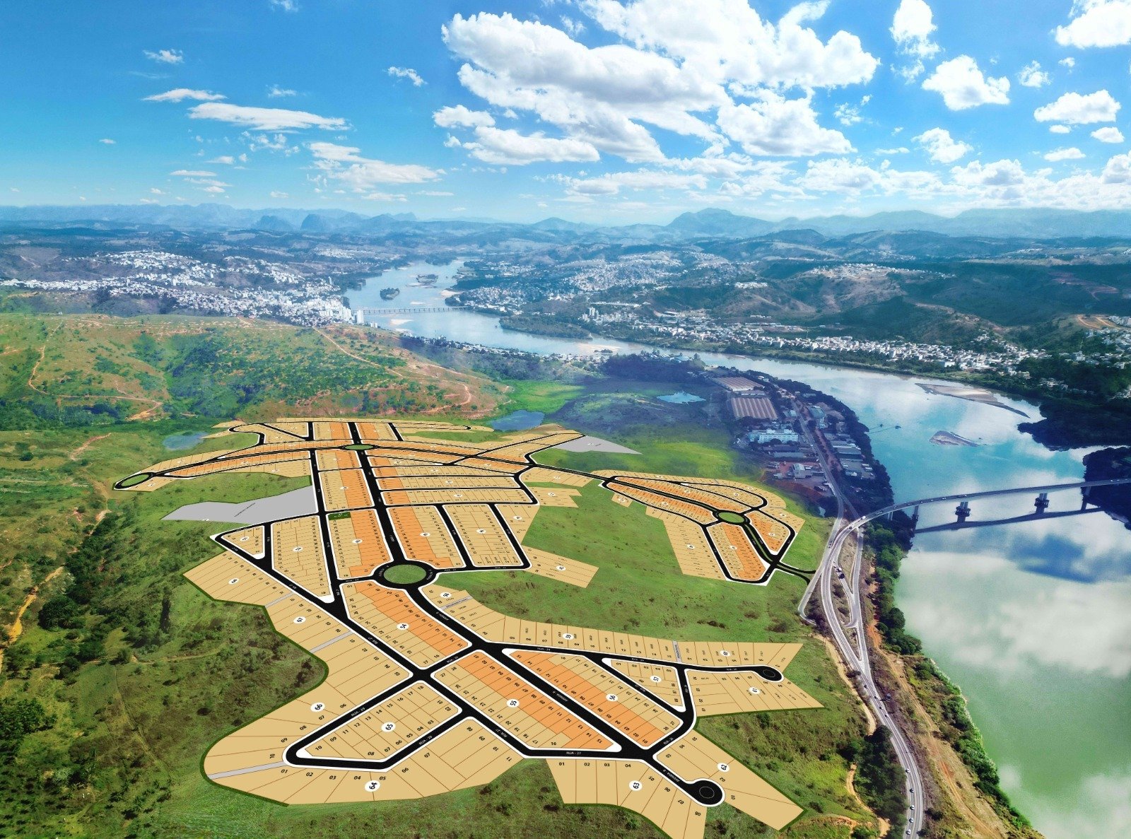 Com mais de 1.100 lotes na primeira etapa, o empreendimento disponibiliza terrenos residenciais e comerciais, com áreas que variam entre 250 m² e 1.508 m². O loteamento conta com rede de água, esgoto e energia elétrica, iluminação pública em LED, pavimentação asfáltica com meio-fio, drenagem, sinalização e paisagismo nos canteiros, oferecendo um padrão construtivo de excelência.